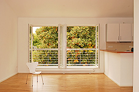 Zwei unbewohnbare Kleinstwohnungen im Dach eines in 19. Jhdt. erbauten Mehrfamilienhauses in bester Zehlendorflage wurden zu einer großzügigen Penthousewohnung zusammengefasst. Durch Anheben der Traufe wurde ein raumbreites französisches Fenster ermöglicht, durch das ein ungehinderter Blick auf historische Linden im Garten geschaffen wird. Ein bis dahin ungenutztes Flachdach konnte in einen geräumigen Balkon umgewandelt werden, der direkt von der offenen Wohnküche aus erschlossen wird. Im Nebentrakt befinden sich das Kinderzimmer/Büro sowie das ruhig gelegene Schlafzimmer unter den expressiven Dachschrägen. Bereits eine Woche nach Fertigstellung im Herbst 2008 wurde ein Mieter für die Penthousewohnung gefunden, und die ehemals verwahrlosten Dachstuben mit neuem Leben gefüllt.